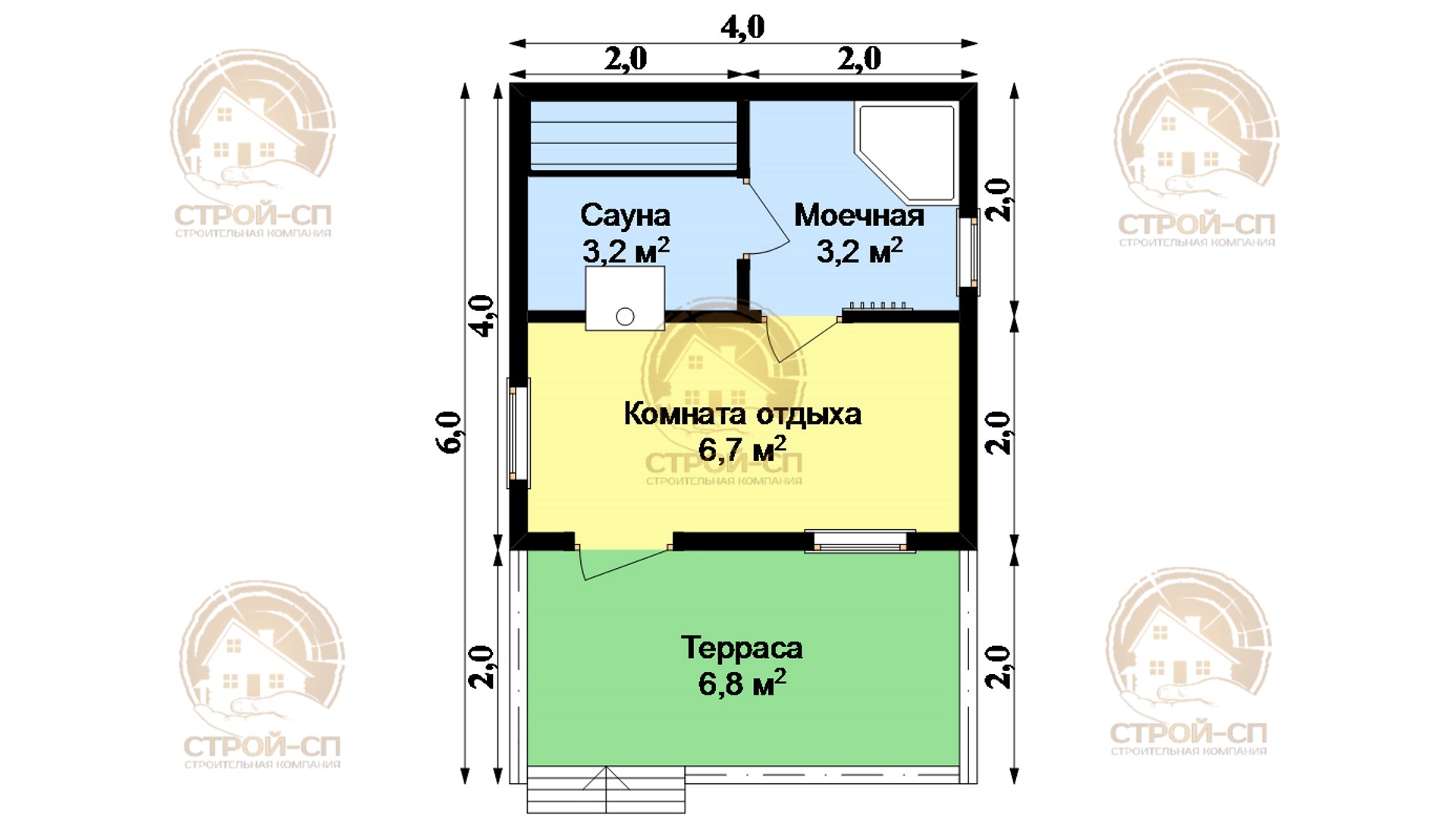 Проект бани из бруса БО08